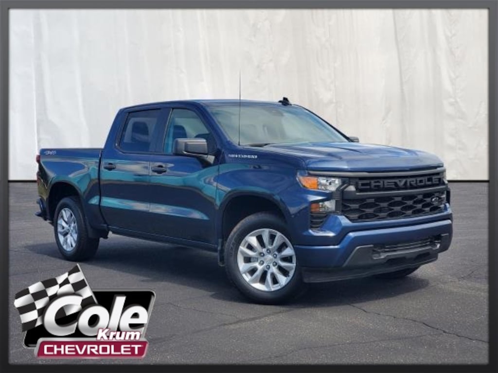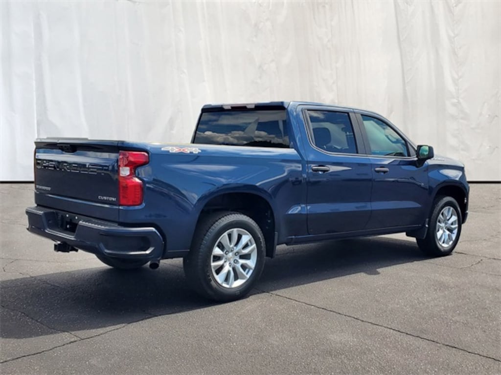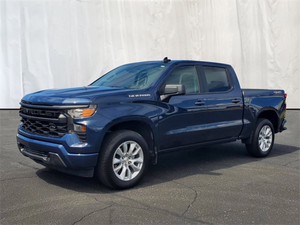 Clean CARFAX REPORT!, Local Trade!, Carfax one owner!, **LOCAL TRADE**, **NON SMOKER**, Silverado 1500 Custom, Chevrolet Certified Pre-Owned Certified, 4D Crew Cab, 2.7L Turbo, 8-Speed Automatic, 4WD, Northsky Blue Metallic, Black Cloth, Custom Convenience Package, Custom Value Package, Electric Rear-Window Defogger, EZ Lift Power Lock & Release Tailgate, LED Cargo Area Lighting, Remote Vehicle Starter System, Trailering Package, 10-Way Power Driver Seat w/Lumbar, 120-Volt Bed Mounted Power Outlet, 120-Volt Instrument Panel Power Outlet, 3.42 Rear Axle Ratio, 3.5" Monochromatic Display Driver Info Center, 4-Wheel Disc Brakes, 40/20/40 Front Split-Bench Seat, 6 Speakers, 6-Speaker Audio System, ABS brakes, Air Conditioning, Alloy wheels, AM/FM radio: SiriusXM, Apple CarPlay/Android Auto, Auto High-beam Headlights, Automatic Emergency Braking, Bluetooth® For Phone, Brake assist, Bumpers: body-color, Chevrolet Connected Access Capable, Cloth Seat Trim, Color-Keyed Carpeting Floor Covering, Compass, Deep-Tinted Glass, Delay-off headlights, Driver door bin, Driver vanity mirror, Dual front impact airbags, Dual front side impact airbags, Dual Rear USB Ports (Charge Only), Electrical Steering Column Lock, Electronic Cruise Control, Electronic Stability Control, Following Distance Indicator, Forward Collision Alert, Front anti-roll bar, Front Black Bowtie Emblem (LPO), Front Center Armrest w/Storage, Front Frame-Mounted Black Recovery Hooks, Front Pedestrian Braking, Front reading lights, Front Rubberized Vinyl Floor Mats, Front wheel independent suspension, Fully automatic headlights, HD Rear Vision Camera, Heated door mirrors, High Capacity Suspension Package, Hitch Guidance, Illuminated entry, IntelliBeam Automatic High Beam On/Off, Lane Keep Assist w/Lane Departure Warning, Low tire pressure warning, Manual Tilt Wheel Steering Column, Not Equipped w/Rear USB Ports, Not Equipped w/Steering Column Lock, Occupant sensing airbag, OnStar & Chevrolet Connected Services Capable, Outside temperature display, Overhead airbag, Overhead console, Panic alarm, Passenger door bin, Passenger vanity mirror, Power door mirrors, Power driver seat, Power Front Windows w/Driver Express Up/Down, Power Front Windows w/Passenger Express Down, Power Rear Windows w/Express Down, Power steering, Power windows, Preferred Equipment Group 1CX, Premium audio system: Chevrolet Infotainment 3, Radio data system, Radio: Chevrolet Infotainment 3 System, Rear 60/40 Folding Bench Seat (Folds Up), Rear reading lights, Rear Rubberized-Vinyl Floor Mats, Rear step bumper, Rear window defroster, Remote Keyless Entry, Remote keyless entry, Security system, SiriusXM Radio, Speed control, Speed-sensing steering, Split folding rear seat, Standard Tailgate, Tachometer, Theft Deterrent System (Unauthorized Entry), Tilt steering wheel, Traction control, Trip computer, Variably intermittent wipers, Voltmeter, Wheels: 20" x 9" Bright Silver Painted Aluminum, Wi-Fi Hot Spot Capable, Wireless Phone Projection, Silverado 1500 Custom, 4D Crew Cab, 2.7L Turbo, 8-Speed Automatic, 4WD, Northsky Blue Metallic, Black Cloth, Custom Convenie