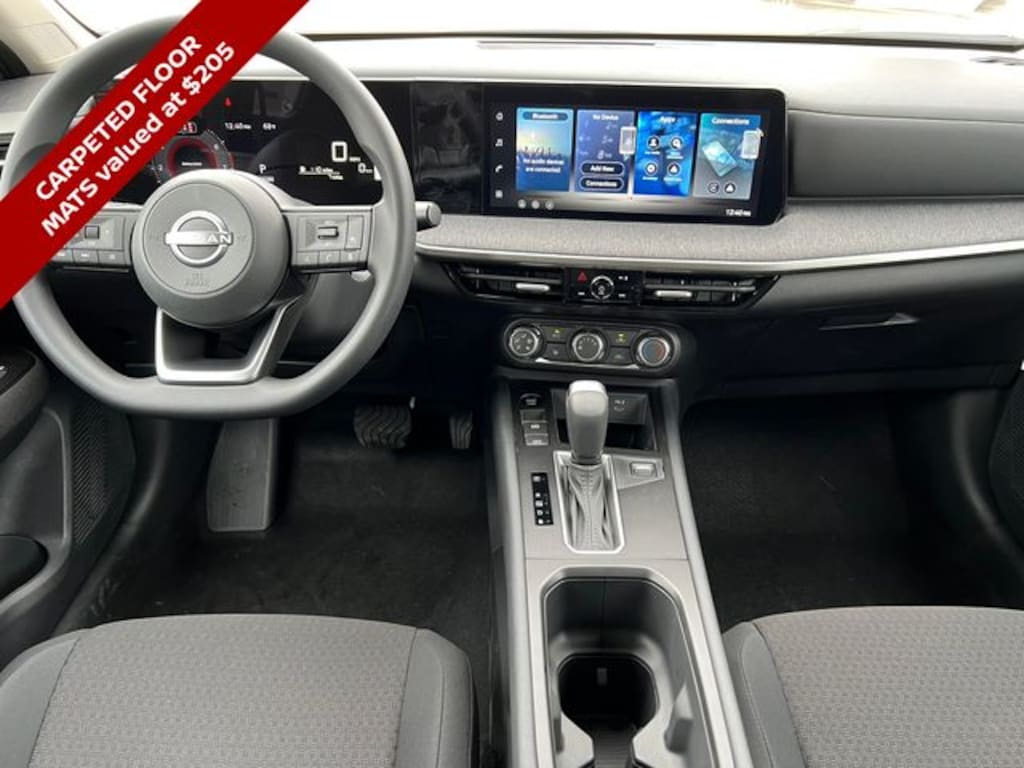 4 Speakers, 4-Wheel Disc Brakes, ABS brakes, Air Conditioning, AM/FM radio, Auto High-beam Headlights, Blind Spot Warning, Brake assist, Bumpers: body-color, Carpeted Floor Mats, Cloth Seat Trim, Driver door bin, Driver vanity mirror, Driver's Seat Mounted Armrest, Dual front impact airbags, Dual front side impact airbags, Electronic Stability Control, Emergency communication system, Exterior Parking Camera Rear, Four wheel independent suspension, Front anti-roll bar, Front Bucket Seats, Front reading lights, Fully automatic headlights, Illuminated entry, Knee airbag, Low tire pressure warning, NissanConnect featuring Apple CarPlay and Android Auto, Occupant sensing airbag, Outside temperature display, Overhead airbag, Panic alarm, Passenger door bin, Passenger vanity mirror, Power door mirrors, Power steering, Power windows, Radio data system, Radio: AM/FM/SiriusXM Audio System, Rear anti-roll bar, Rear reading lights, Rear side impact airbag, Rear window defroster, Rear window wiper, Remote keyless entry, Security system, Speed control, Speed-sensing steering, Splash Guards, Split folding rear seat, Spoiler, Sport steering wheel, Steering wheel mounted audio controls, Tachometer, Telescoping steering wheel, Tilt steering wheel, Traction control, Trip computer, Variably intermittent wipers, Wheels: 16" Steel with Full Covers.