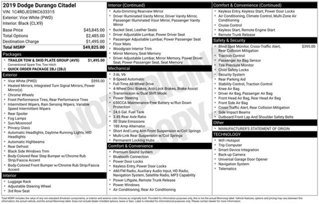 Vice White 2019 Dodge Durango Citadel 4D Sport Utility AWD 8-Speed Automatic 3.6L V6 24V VVT