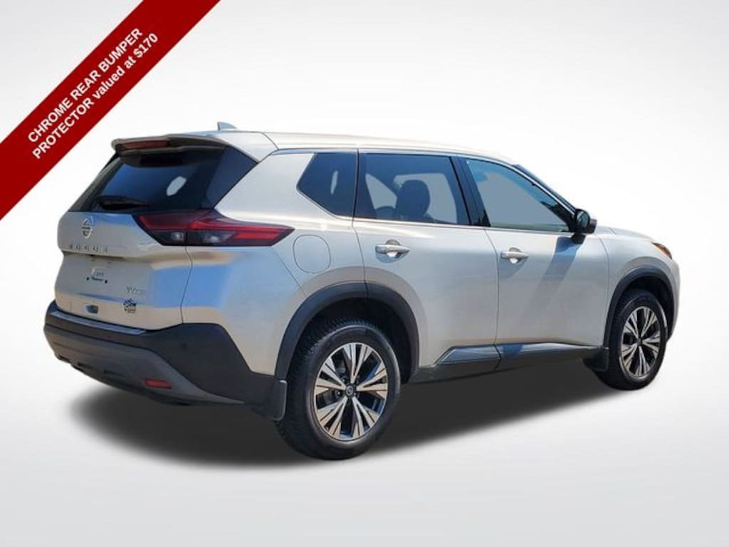 Rogue SV, AWD, Brilliant Silver Metallic, 18" Aluminum Alloy Wheels, 4-Wheel Disc Brakes, 5.604 Axle Ratio, 6 Speakers, ABS brakes, Air Conditioning, Alloy wheels, AM/FM Radio, AM/FM radio, Auto High-beam Headlights, Automatic temperature control, Black Splash Guards (Set of 4), Brake assist, Bumpers: body-color, Chrome Rear Bumper Protector, Cloth Seat Trim, Delay-off headlights, Driver door bin, Driver vanity mirror, Dual front impact airbags, Dual front side impact airbags, Electronic Stability Control, Emergency communication system: NissanConnect Services, First Aid Kit, Floor Mats w/1-Piece Cargo Area Protector, Four wheel independent suspension, Front anti-roll bar, Front Bucket Seats, Front Center Armrest, Front dual zone A/C, Front reading lights, Fully automatic headlights, Heated door mirrors, Illuminated entry, Knee airbag, Low tire pressure warning, NissanConnect featuring Apple CarPlay and Android Auto, Occupant sensing airbag, Outside temperature display, Overhead airbag, Overhead console, Panic alarm, Passenger door bin, Passenger vanity mirror, Power door mirrors, Power driver seat, Power steering, Power windows, Radio data system, Rear anti-roll bar, Rear Parking Sensors, Rear seat center armrest, Rear side impact airbag, Rear window defroster, Rear window wiper, Remote keyless entry, Security system, Speed control, Speed-Sensitive Wipers, Split folding rear seat, Spoiler, Steering wheel mounted audio controls, Tachometer, Telescoping steering wheel, Tilt steering wheel, Traction control, Trip computer, Turn signal indicator mirrors, Variably intermittent wipers, Rogue SV, AWD, Brilliant Silver Metallic.